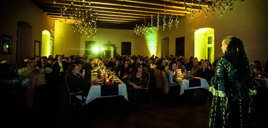 - Wie viele Gäste finden in dem Veranstaltungsraum Platz, in dem die Gruseldinner stattfinden sollen?